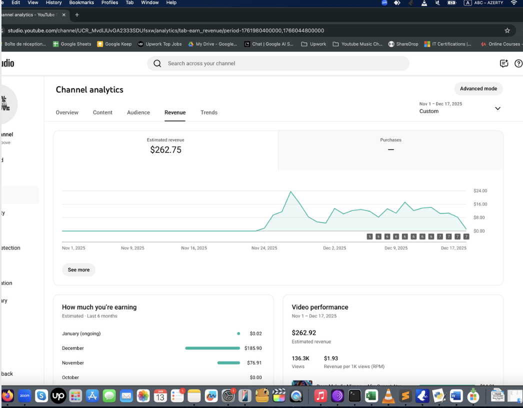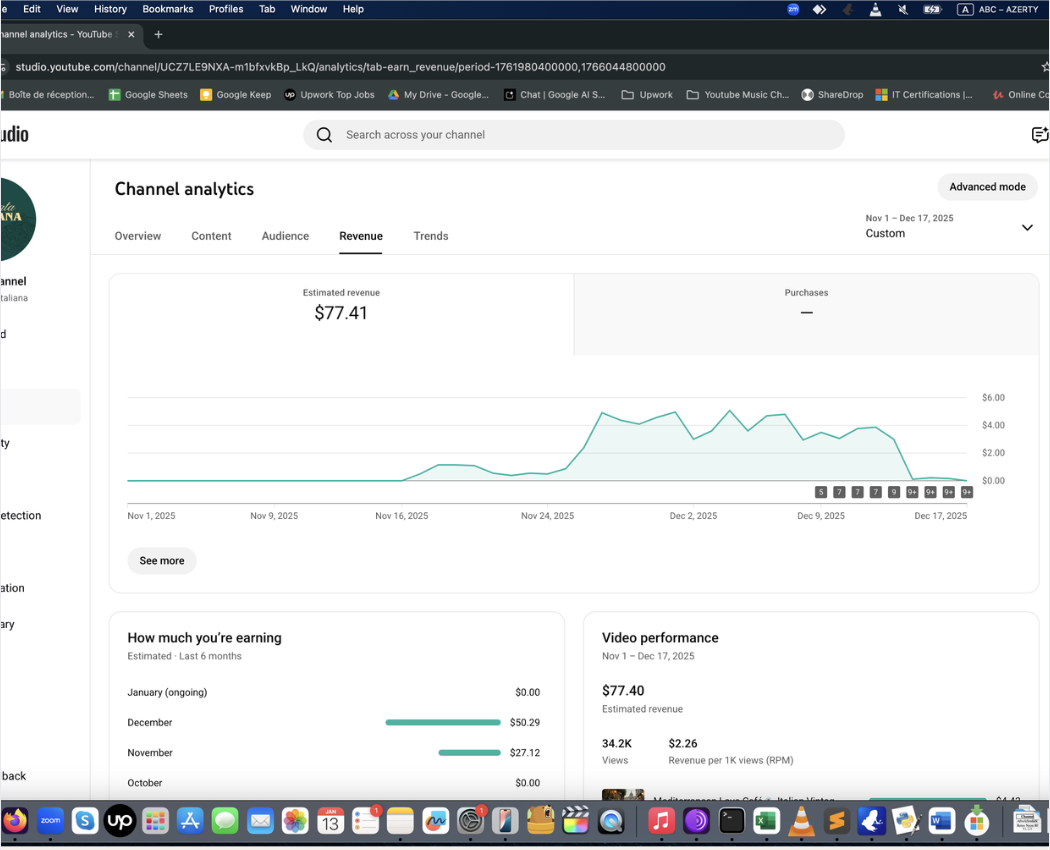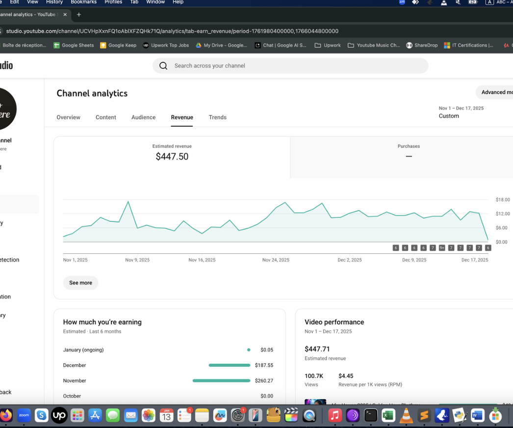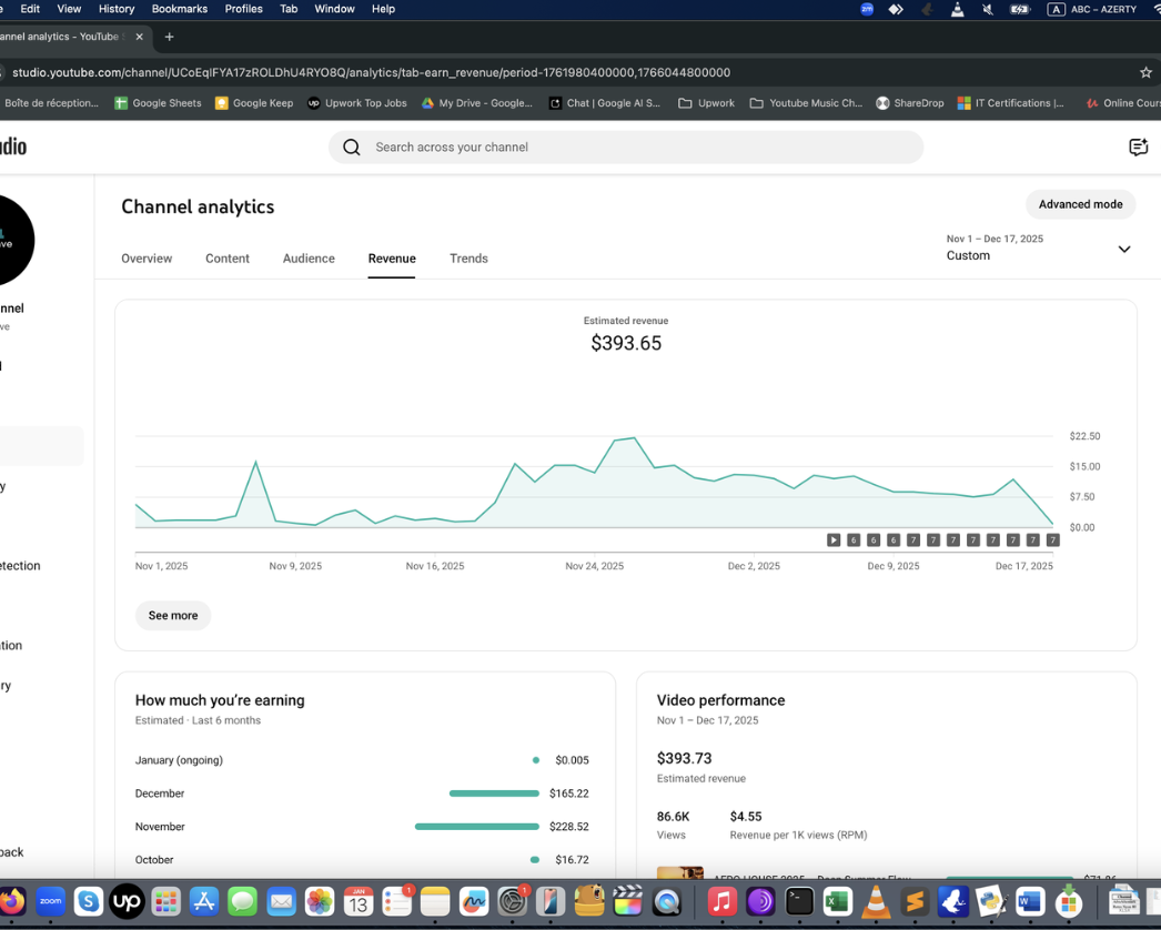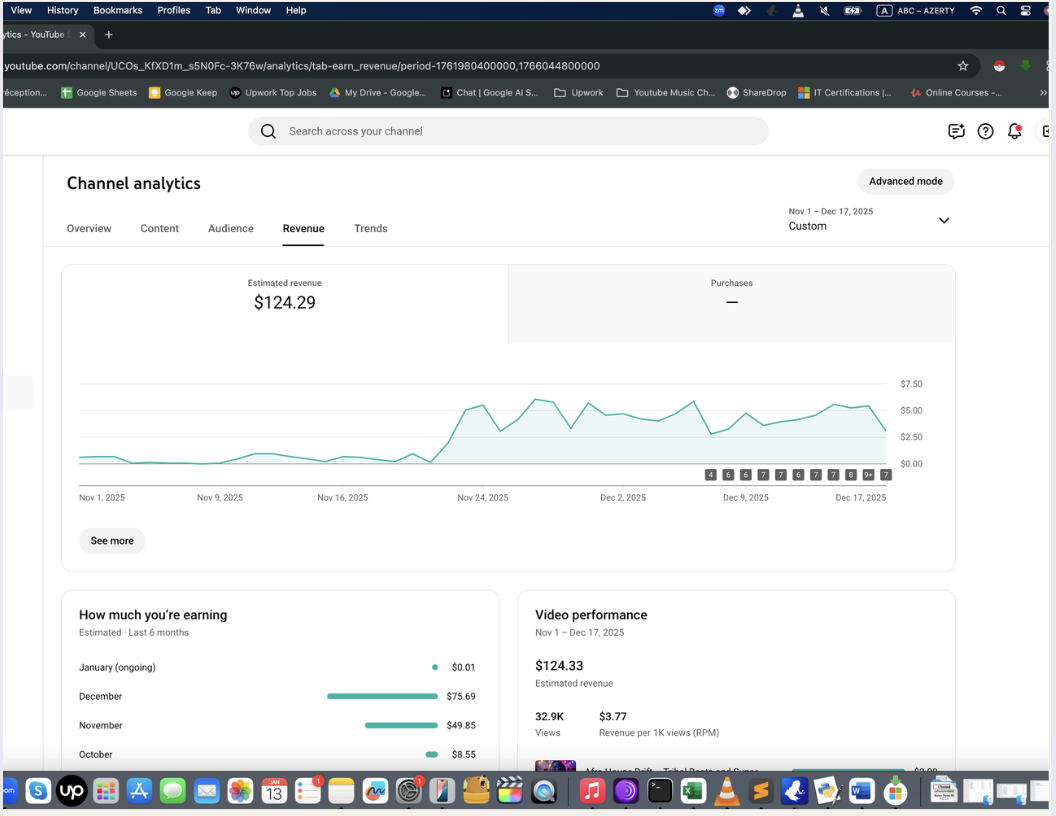 Ayda 0-400 dolar arası kazanan örnek Müzik Otomasyonu panel görüntüleri aşağıda. Bunlar sadece birer deneysel örnektir. Gördüğünüz gibi, kanalın gelir durumunu öngörmek mümkün olmuyor. Başlayıp, görmek gerekiyor. Bu bir pasif gelir değildir, niş seçmeniz ve video üretip yüklemek için bilgisayarınızda yazılımı ayda bir çalıştırmanız gerekir.